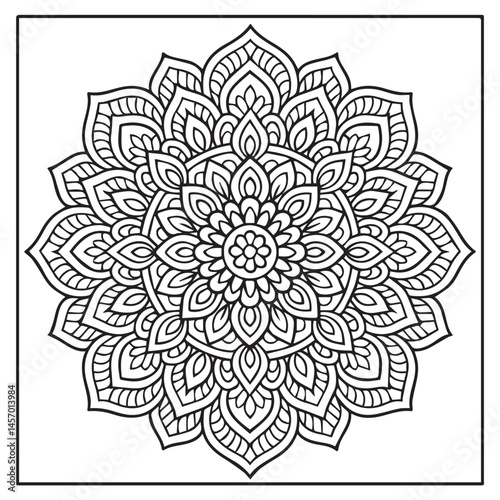 Intricate Mandala Design: A mesmerizing mandala illustration with a detailed intricate design composed of symmetrical patterns, perfect for adult coloring books, meditation.
