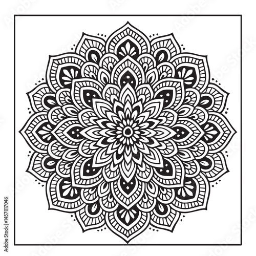 Intricate Mandala Design: A mesmerizing mandala illustration with a detailed intricate design composed of symmetrical patterns, perfect for adult coloring books, meditation.