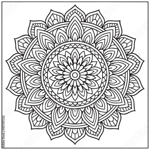 Intricate Mandala Design: A mesmerizing mandala illustration with a detailed intricate design composed of symmetrical patterns, perfect for adult coloring books, meditation.