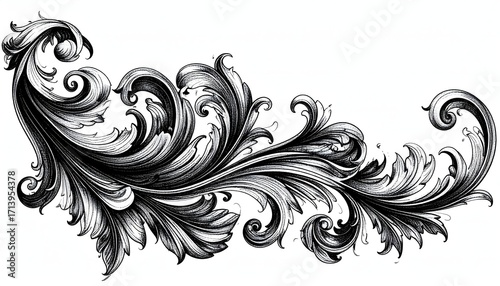 flourish, ornament, swirl, baroque, acanthus, scroll, decorative, motif, intricate, detailed, illustration, drawing, vignetting, engraving, vintage, classic, design, graphic, resource, vector, monochrome, black, white, artwork, border, divider, corner, element, pattern, symmetry, elegant, luxury, formal, calligraphy, leaf, nature, plant, curve, shadow, shading, outline, ai, artificial intelligence, wallpaper, background, floral, art, swirl
