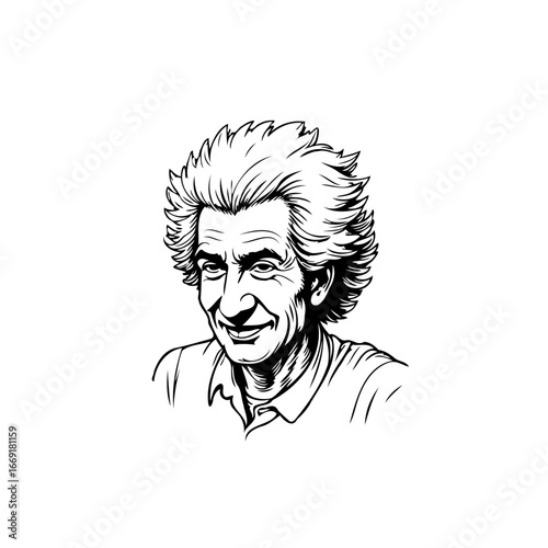 portrait, man, monochrome, line, art, drawing, face, illustration, vignetting, older, person, male, style, artwork, graphic, black, white, design, head, wrinkle, hair, smile, expression, mature, adult, character, elderly, detailed, bold, stroke, shading, contour, wrinkle, expressive, unique, refined, simplicity, ageing, wisdom, life events