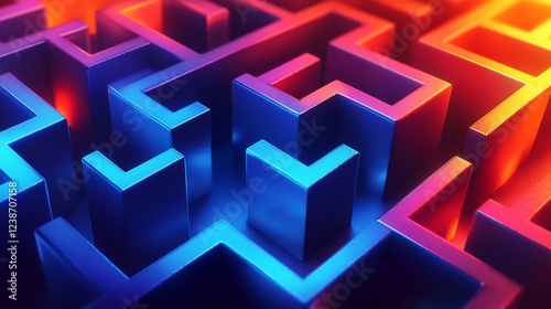 labyrinth, labyrinth, puzzle, challenge, complexity, path, way, direction, journey, exploration, solution, problem, solving, intricate, complex, abstract, design, geometry, pattern, structure, three-dimensional, rendering, graphic, illustration, neon, bright, colourful, vibrant, blue, red, orange, gradient, light, shadow, perspective, depth, illusion, optical, art, modern, contemporary, background, texture, wallpaper, surface, line, shape, angle, corner