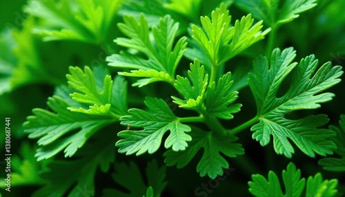 Intricate parsley sprigs, leafy green texture , vegetable, botanical
