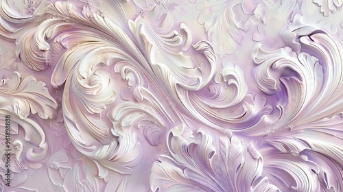 Intricate patterns in soft lavender and ivory with shadowy gradients