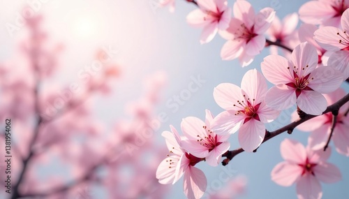 Intricate sakura branch pattern, soft pastel pinks & whites , textile, art, petals
