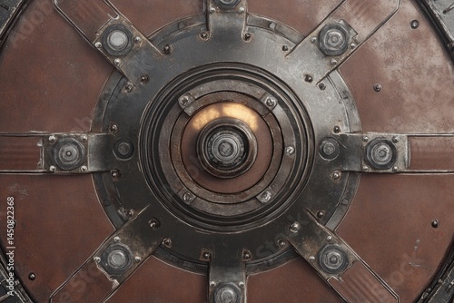 circular, panel, metal, machinery, intricate, design, technology, futuristic, armoring, defense, engine, glowing, light, heat, mechanism, industrial, detail, closeup, texture, brown, dark, red, orange, round, modern, art, illustration, digital, graphic, fantasy, science, fiction, mechanical, detailed, geometric, structure, pattern, element, metallic, tech, innovation, gizmo, contraption, protection, security, strong, power, energy