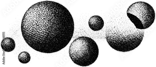 Intricate stippling dotwork of circular shapes in vintage halftone style for artistic design