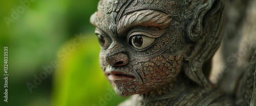 statue, sculpture, stone, carving, mythical, creature, deity, ancient, aged, weathered, detail, pattern, scale, green, brown, earth-tone, muted, colours, background, blurred, closeup, sharpened, composition, mystery, antiquity, art, history, culture, spirituality, garden, website, blog, publication, marketing, material, travel, agency, museum, institution