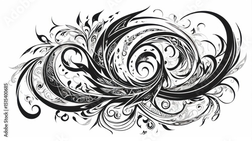 ornate, swirling, floral, design, pattern, abstract, black, white, decorative, intricate, elegant, complex, symmetry, flowing, organic, curved, artistic, graphic, vector, patterned, monochrome, whimsical, detailed, style, swirl, curve, line, black-and-white, decor, ornament, artwork, illustration, image, texture, art