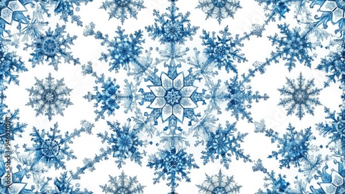Intricate, symmetrical snowflake designs form a seamless, repeating pattern on a white background, perfect for holiday, winter, or frosty-themed projects.