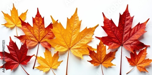Intricate vein detail of assorted dried maple leaves against a stark white backdrop , leaves, seasonal, white background