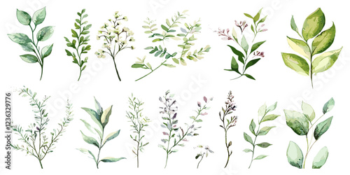 Intricate Watercolor Flower Illustration, Big Set of Elements with Manual Composition for Creative Artworks