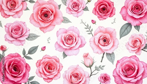 Intricate watercolor rose pattern, blush pink hues, floral design, watercolor