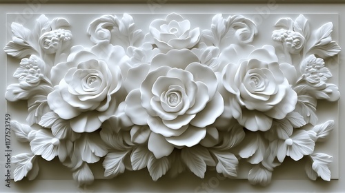 rose, white, carving, floral, design, relief, sculpture, art, flower, leaf, flower petals, ornate, elegant, detail, texture, background, pattern, three, dimensional, embossed, in plaster, stone, marble, wall, panel, decor, home, interior, architecture, classical, romantic, vintage, style, beauty, nature, blossom, bloom, delicate, graceful, sophisticated, luxurious, craftsmanship, artistry