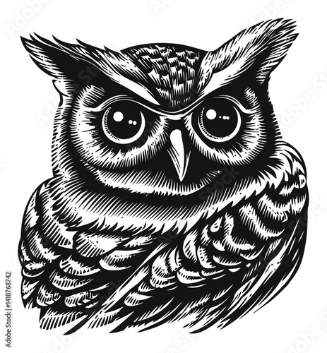Intricate Woodcut Engraving of an Alert Owl Design