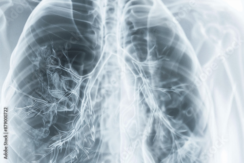 intricate X-ray of human lungs, capturing the detailed network of bronchioles and respiratory structures, emphasizing the importance of lung health and respiratory function.