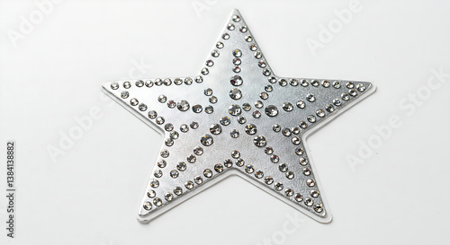 Intricately designed star-shaped patch densely covered in clear, glittering rhinestones, ready for iron-on application as a fashion accessory."