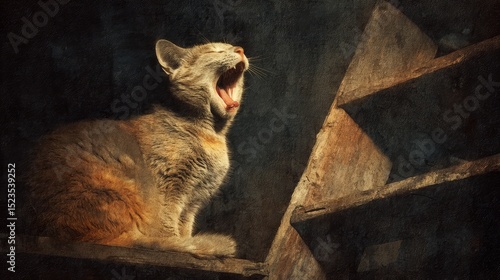 Intriguing cat kayaking adventure in dark room, captivating exploration