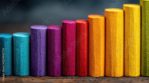 Investment opportunity on value and trading wealth concept. Colorful wooden blocks arranged in ascending order on a table.