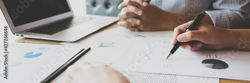 Investor calculating profits on stock market exchange.Investment planing and strategy concept, Financial data analysis graph business