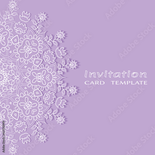 Invitation or Card template with lacе frame border, doodle line pattern, mandala element. Decorative openwork filigree art background for Wedding, Valentine's day greeting card, Birthday Invitation