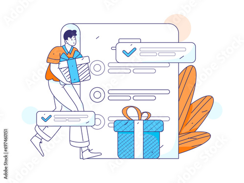 Invite friends to conduct questionnaire flat vector concept operation hand drawn illustration