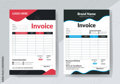Invoice design with difference variation. Office money bills or price receipt Bill invoices and payment agreement design. Bill form business invoice accounting.