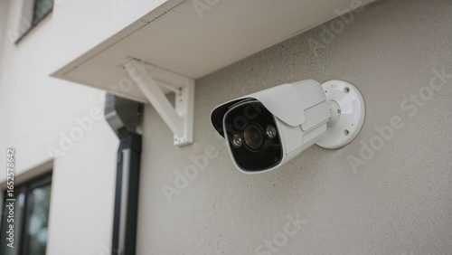 IP CCTV-enabled waterproof security camera installed on the outside of a stylish home, designed for comprehensive video monitoring and security.