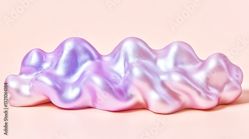 Iridescent fluidity: Luminous abstract shape on a gentle blush background
