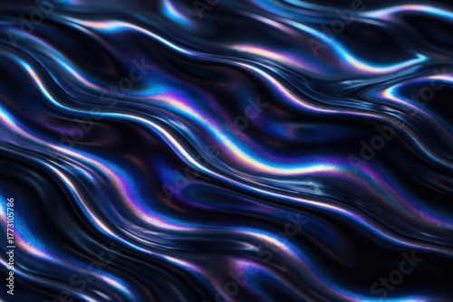 Iridescent metallic liquid waves with neon rainbow reflections glossy abstract backdrop
