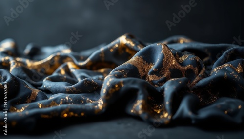 obsidian, silk, drape, fold, pattern, shimmering, thread, shadow, dark background, elegant, fabric, textile, swirling, interior design, lava flow