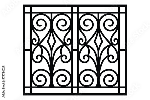 illustration, vector, no people, decoration, metal, gate, ornate, door, fence, architecture, elegance, old-fashioned, design, doorway, metalwork, pattern, luxury, steel, window, boundary, art, victorian style, wrought iron, curve, security, antique, symbol, background, privacy, rack, vertical, art deco, front door, angle, floral pattern, art nouveau, house, leaf, closed, black-and-white, old, textured, frame, grill