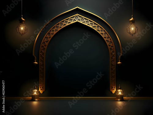 Islamic background with crescent and lantern, Ramadan and Eid Background, Islamic traditional ornamental photo and background, Muslim holiday Design