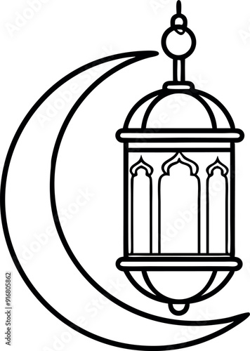 islamic, lantern, crescent, moon, drawing, outline, black, white, ramadan, eid, celebration, decoration, vector, art, design, symbol, festive, religious, simple, illustration, holiday, traditional, muslim, culture, graphic, icon, lamp, spiritual, festivity, ornament, islam, minimalist, religion, abstract, arabesque, middle eastern, worship, faith, decor