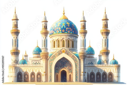 mosque, architecture, dome, gold, blue, beautiful, arabic, design, grand, intricate, culture, vibrant, destination, building, spiritual, islam, religious, majestic, minaret, white, tradition, sacred, prayer, tower, ornate