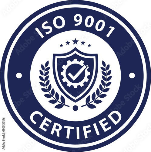 ISO 9001 Certified Badge Vector Emblem for Quality Management and Business Certification