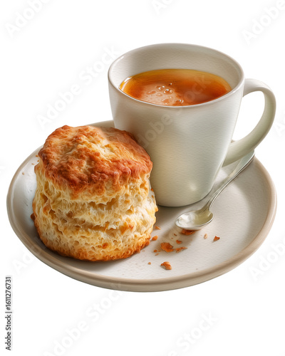 Isolate transparent with watercolor scone , English tea in ceramic bowl, English tea with scone in watercolor illustration, cozy watercolor scene of English tea and scone. PNG die-cut for advertising.
