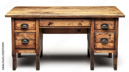 Isolated a white background A classic wooden teacher's desk polished and empty ready for a new school day