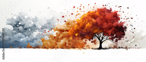 Isolated abstract and season tree illustration, artistic design with changing leaves, nature, and seasons.