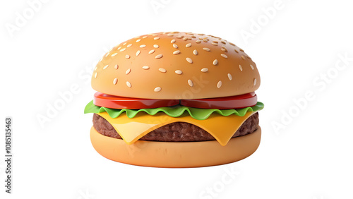 Isolated beef burger with cheese, lettuce, tomato on a bun