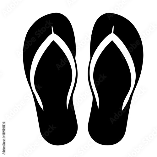 flip-flop, footwear, sandal, beach, summer, vector, isolated, black, white, graphic, shoe, vacation, holiday, travel, poolside, casual attire, simple, minimalist, silhouette, icon, symbol, clip art, resort