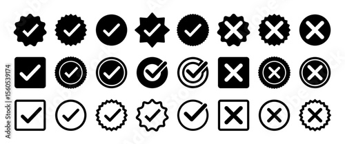 Isolated Black Check Mark icon set, Yes, No Buttons symbol design, Check Box, Banner and Web graphic elements illustration, Editable