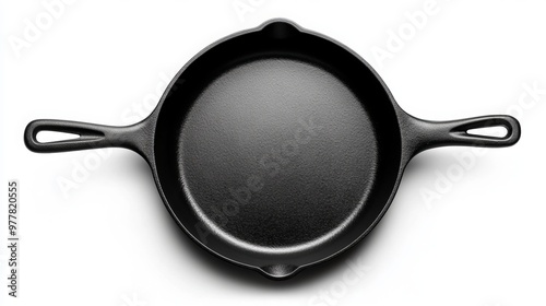 Isolated black frying pan with clipping path on a white background. This high-quality image can be used for a variety of purposes, such as online shopping, food photography, or kitchen design