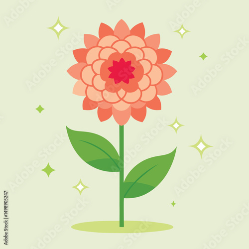 dahlia, flower, blossom, bloom, floral, plant, green, leaf, stem, peach, pink, red, sparkle, shine, light, cartoon, illustration, vector, graphic, design, isolated, background, nature, spring, summer, pastel, botanical, simple, cute