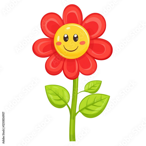 flower, cartoon, smiley face, joyful, happy, cute, red, yellow, green, isolated, illustration, drawing, graphic, clip art, design, spring, summer, floral, bloom, blossom, nature, garden, plant, decoration, ornament, children, children, playful, fun, bright, vibrant, positive, friendly, character, icon, symbol