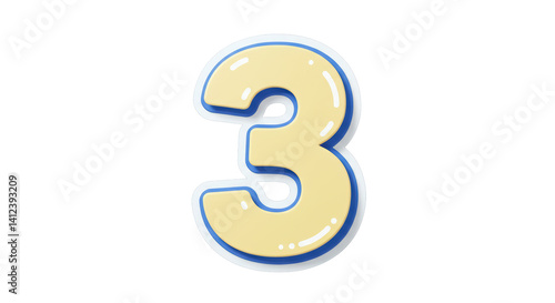 cartoon, number, three, three, isolated, illustration, digit, symbol, character, numerical, design, graphic, clip art, art, drawing, yellow, blue, outline, cute, fun, playful, education, learning, mathematic, mathematic, counting, numeral, third, ordinal, preschool, kindergarten, children, children, school, educational, decorative, whimsical
