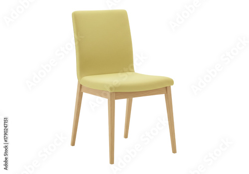 Isolated chair with light wood frame and soft yellow seat is a stylish piece of furniture