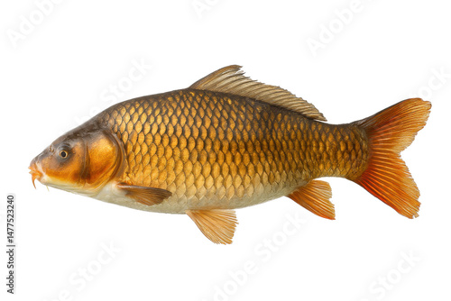 Isolated Common Carp Fish with Golden Scales on a Transparent Background Vector, Freshwater Fish for Aquaculture and Fishing Concepts
