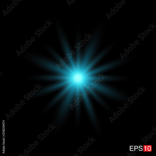 isolated cyan Rays with lens flare, Sun flare, flare on the black background. Transparent Vector Illustration