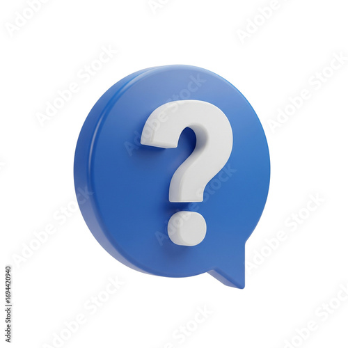 Isolated enigmatic question mark within a vibrant blue speech bubble design illustration